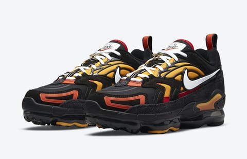 The Vapormax EVO "Underground" fuses bold styling with cutting-edge tech. Featuring flame-inspired orange, red, and yellow overlays on a black base, plus full-length Vapormax cushioning, this pair is built for comfort and standout impact.